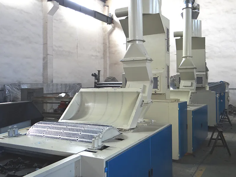 Textile waste recycling line can be used for high-speed opening treatment of various types of waste woven or knitted fabrics, transforming them into their original fiber state. The opened waste fibers can be used to produce various nonwoven products or yarn spinning and weaving, promoting material reuse and sustainable development.